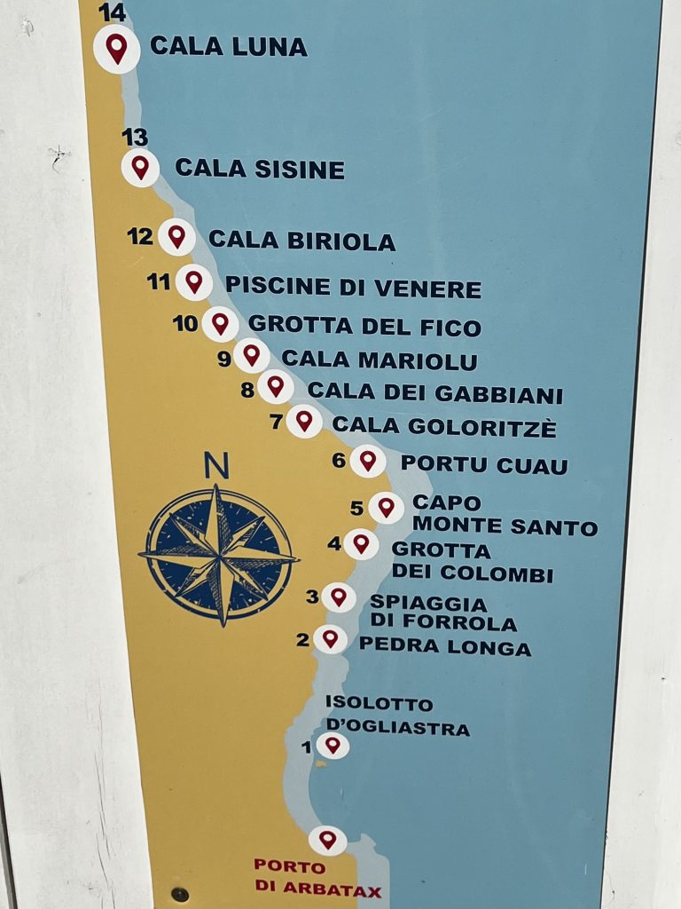 Vi kørte tidligt hjemmefra og ankom 45 minutter senere til Arbatax, hvorfra vi havde booket en heldagssejltur (Search for the Seal) i Orosei-bugten med Paolo fra Charter Sardinia https://www.chartersardinia.com/english/home.html